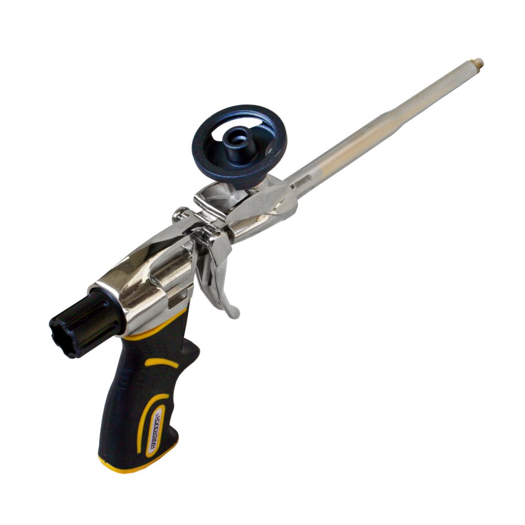 The polyurethane expanding foam applicator ideal for sealing, filling, and sealing small gaps. It is a heavy-duty yet lightweight and compact tool with an ergonomic design that allows it to be used for a long time. Easy to use and has a spring-loaded trigger for precise flow control.